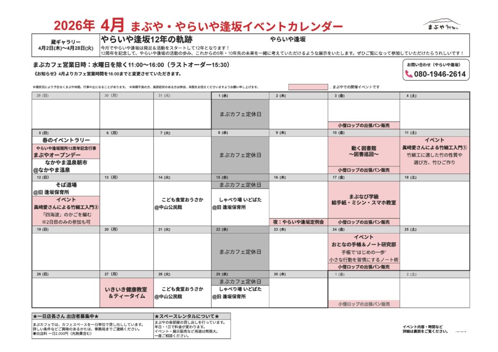 まぶやは、昭和3年に大山町上市(旧中山町)に建てられた馬淵邸を2013年10月にリノベーションして作られた、『地域』と『ひと』をつなぐコミュニティスペースです。